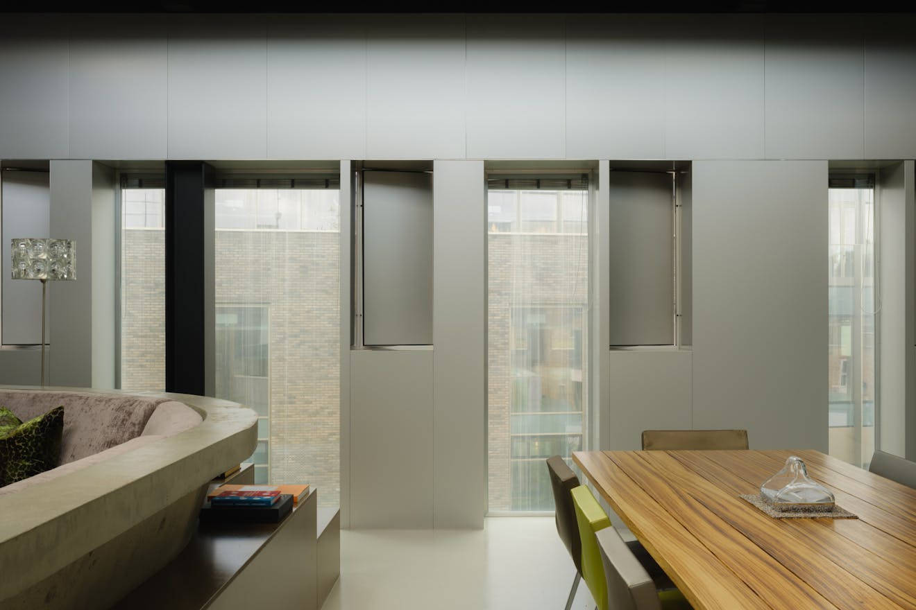 Sitting comfortably between a mix of period and modern architecture, the building feels entirely at ease with its urban context. The house is reached through the formal entrance on Harrow Road, or via the adjacent garage through glazed sliding doors and up a gently rising staircase.