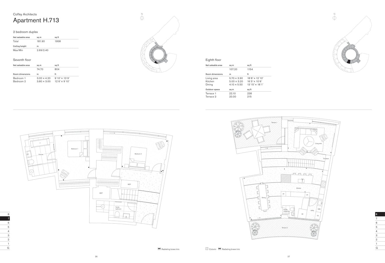 A newly built two-bedroom duplex apartment located on the top floor of the reimagined BBC Television Centre. This 1973 sq ft dual aspect apartment designed by Coffey Architects with interiors by Suzy Hoodless has high ceilings and abundant natural light, terrazzo flooring with inset brass detailing, comfort cooling, a utility and two roof terraces.
