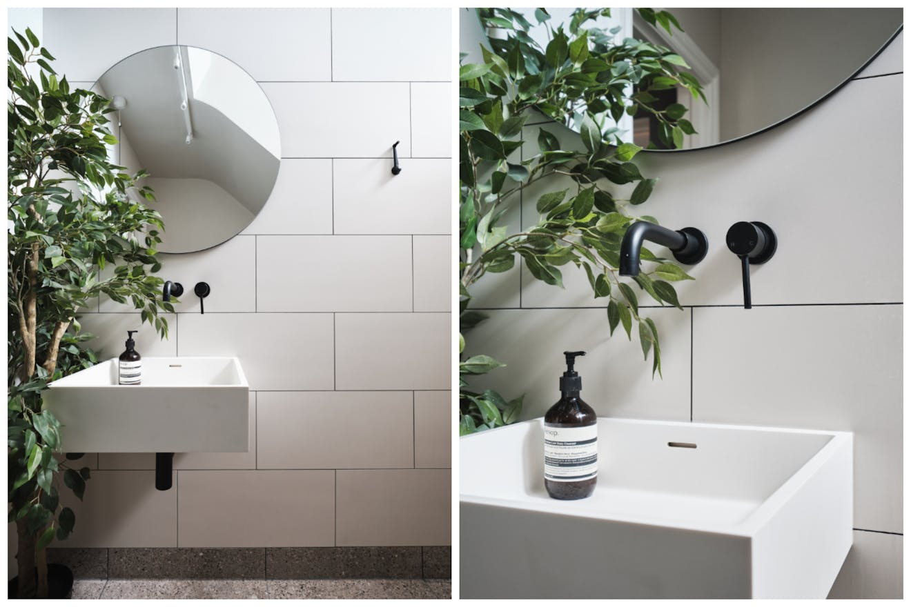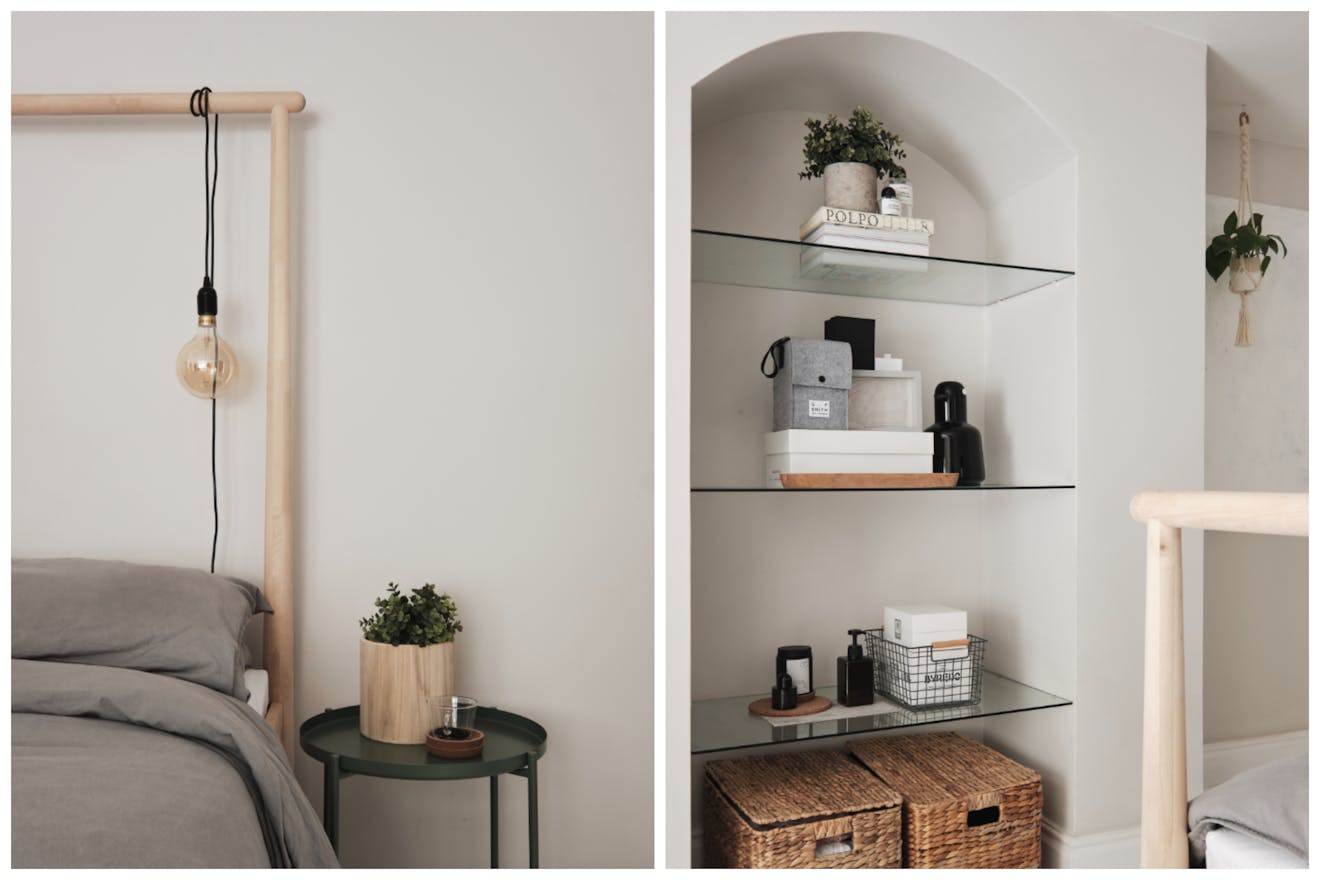 This apartment is well-designed in every detail. With well-thought-out nooks for storage and styling, sliding doors to optimise space, and a palette of tranquil, Scandinavian inspired tones. The kitchen is well-equipped with Italian brushed brass tap and mixer, honed granite worktops, a wine cooler and ample storage. It has plenty of room for a large dining table, which can be stowed against the wall, and a built-in bench that provides additional storage. The living room is a generous size and has double doors leading out towards the communal garden and private parking. It has a fireplace and chimney which can be re-instated should you wish. Both bedrooms are good-sized doubles and the master has its own bay window, ushering in light. The shower room, with its barn-style sliding door, has matt-black brassware throughout, a resin basin, terrazzo style floor tiles and a double height space over the shower. At the front of the flat there’s an additional small, private, walled space, big enough for a couple of chairs and a table. There is also dedicated off-street parking space and two guest spaces.