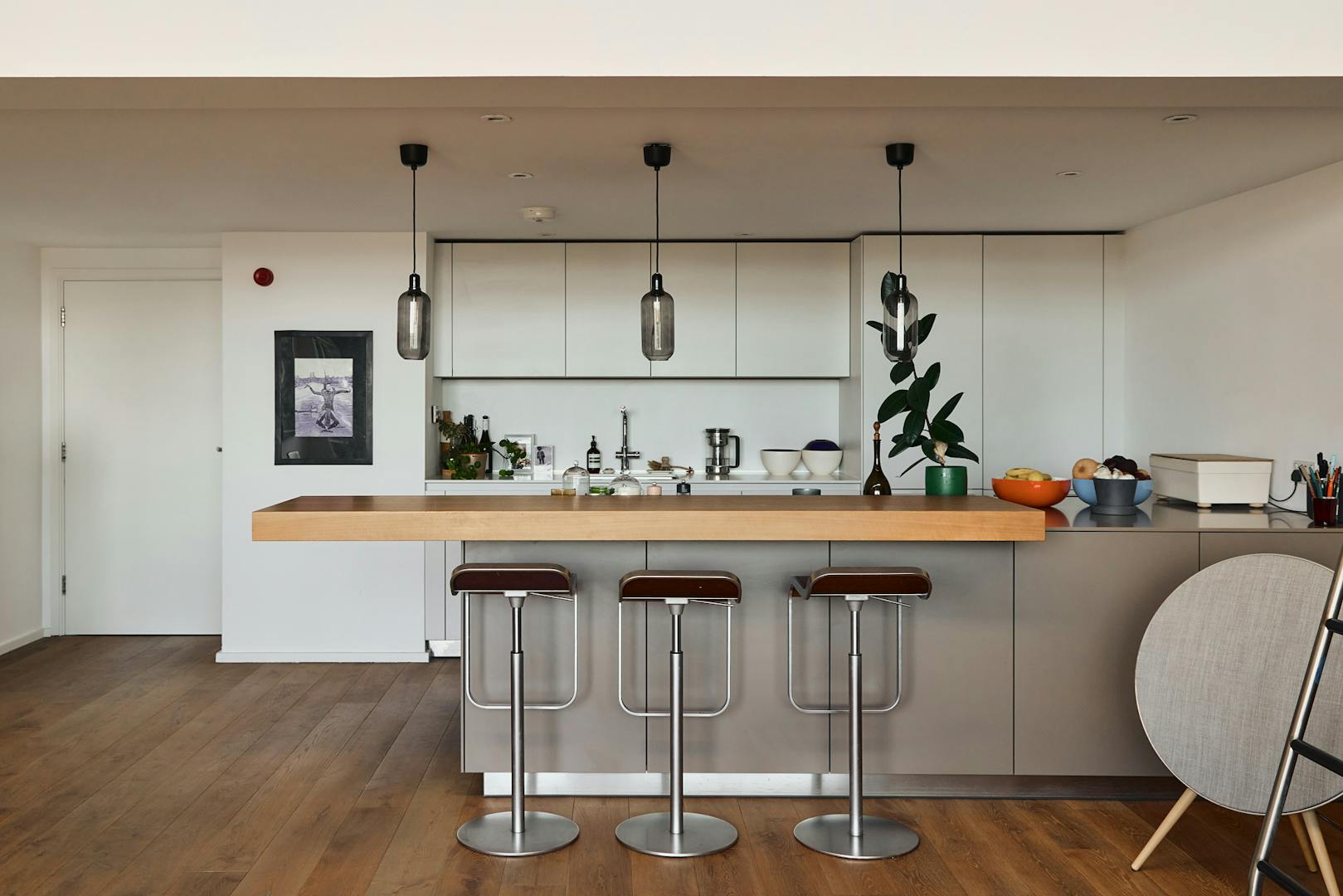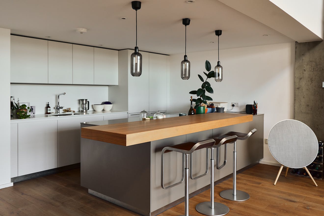 Tucked away along a peaceful stretch of Regent’s Canal, this curated two-bedroom apartment forms part of a sought-after building in Islington. Arranged in a loft-style configuration, the interior is defined by clean architectural lines and a refined material palette.