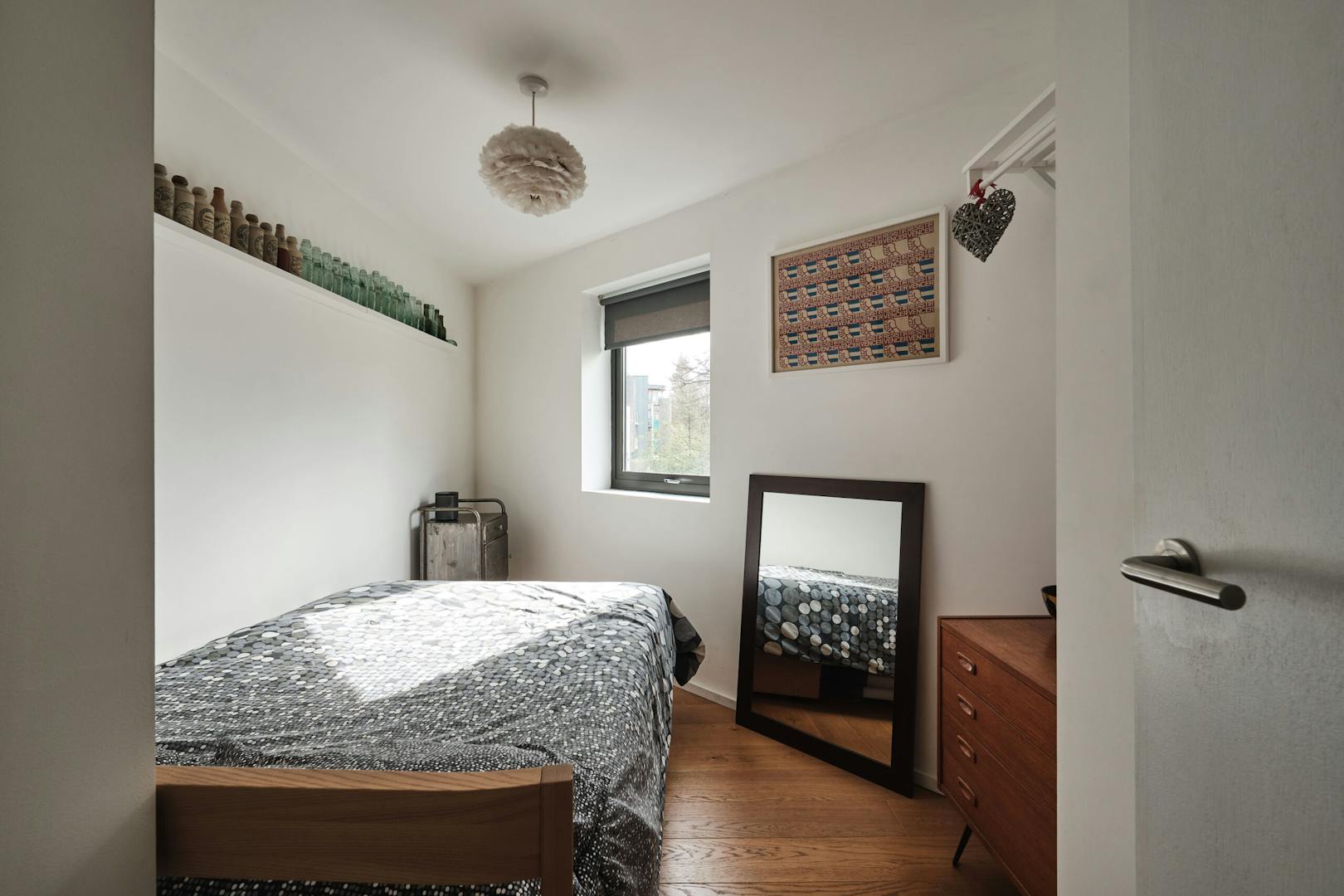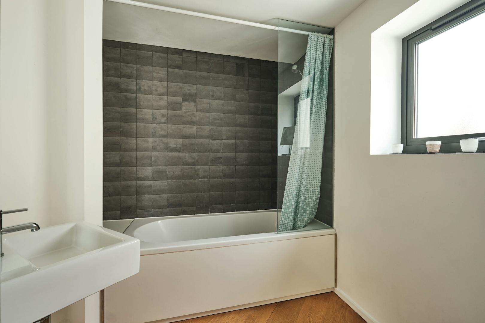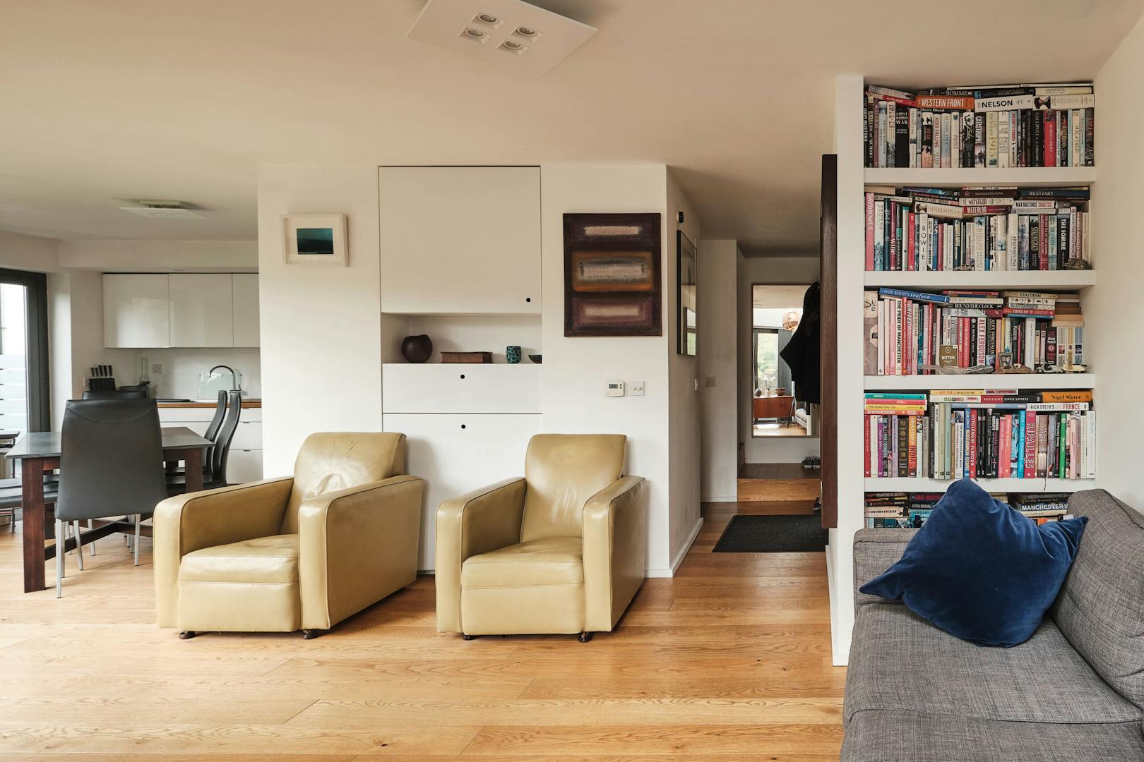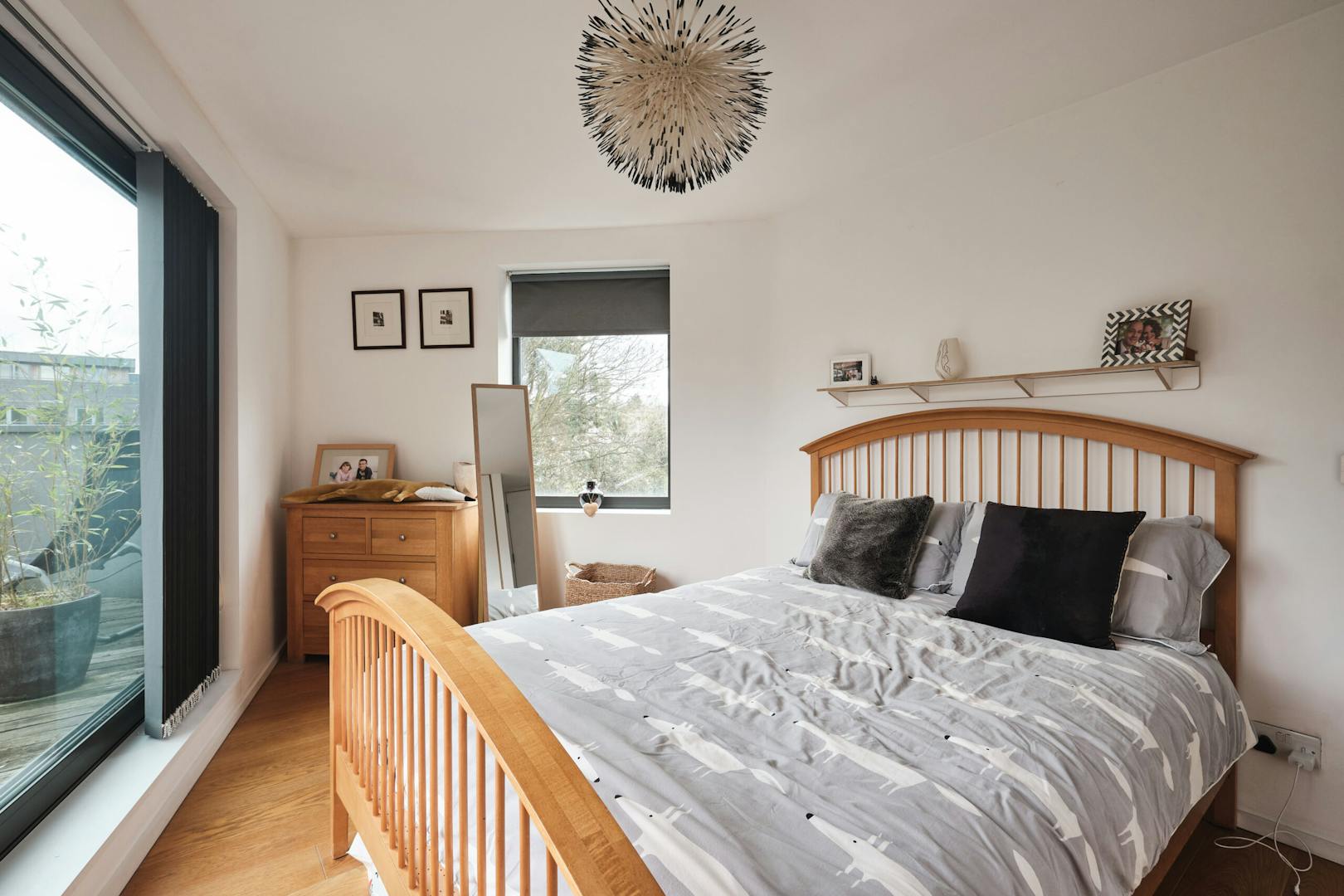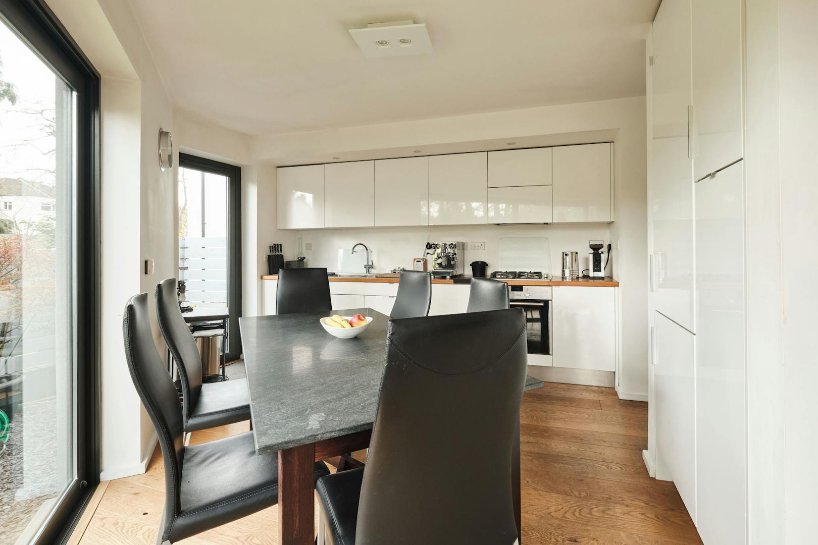 Overlooking the historic river Quaggy, the house boasts a picturesque vista with large picture windows and sliding doors that open out to a courtyard garden and the river wall, making the most of this enviable view. The open-plan living area and kitchen are on the ground floor, which also includes a double-height void, storage cupboards, a utility room and a WC.