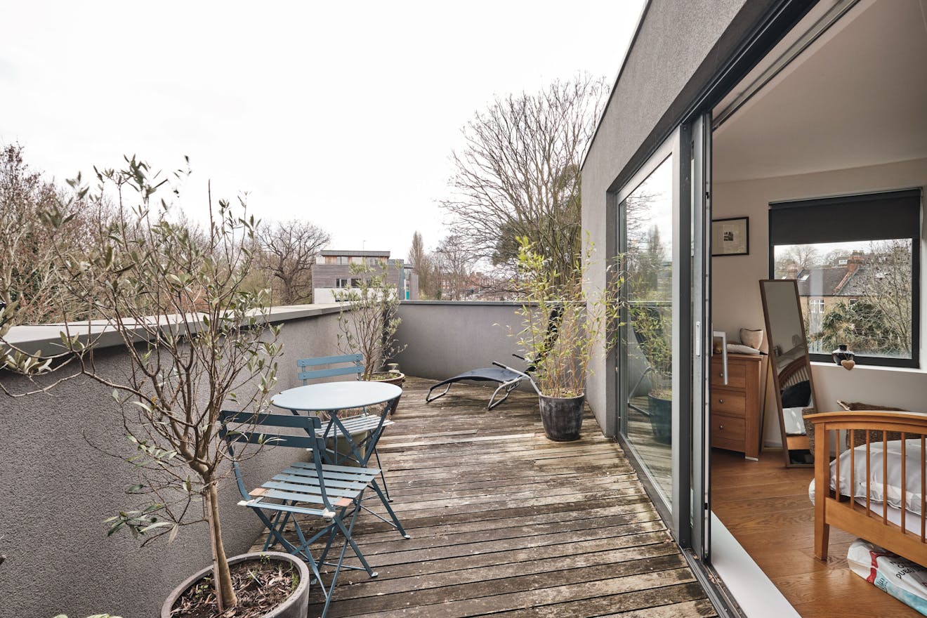 Upstairs to the first floor, there is a family bathroom, a double bedroom and an additional, flexible room that can be used as an additional living space or can be separated and used as a bedroom. The top floor has a further large double bedroom with en suite and terrace.
