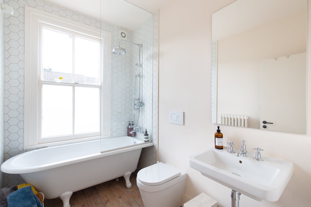 This bright and airy apartment is accessed via a light-filled communal stairwell. Once inside, you will find the two double bedrooms to your right, a large double-spaced living area to your left and the bathroom directly ahead. The original restored hardwood floorboards run from the hallway throughout the entire flat, and each room benefits from a sash window.