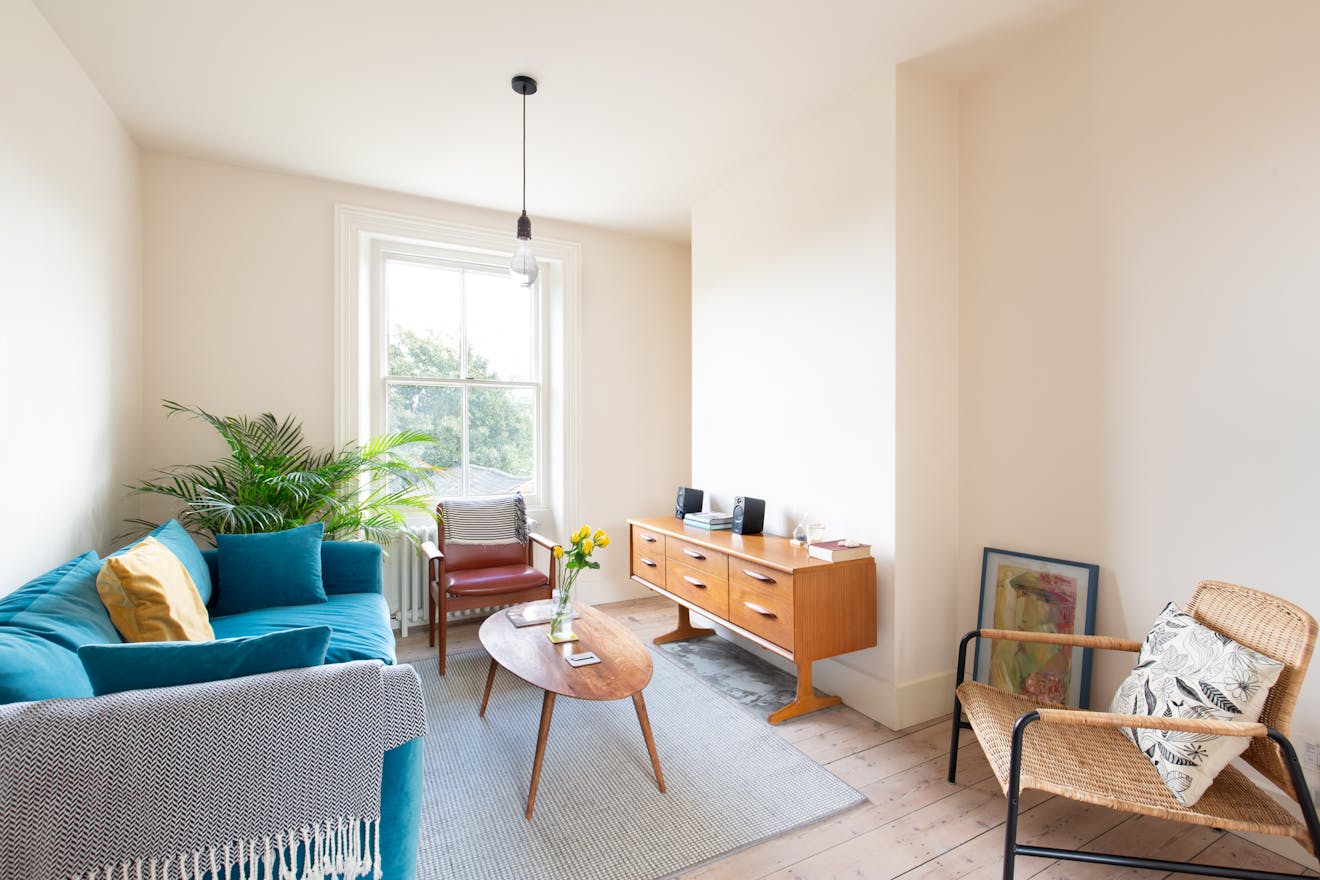 Set on the first floor of an attractive Victorian terraced house, this two-double-bedroom apartment has been beautifully remodelled by design-led property group Frame, and architect George Dawes. The careful, sympathetic restoration has maintained the original character and proportions of the building, while creating functional and flexible apartments. The result is an elegant, contemporary home with a natural, calming palette and considered design details.